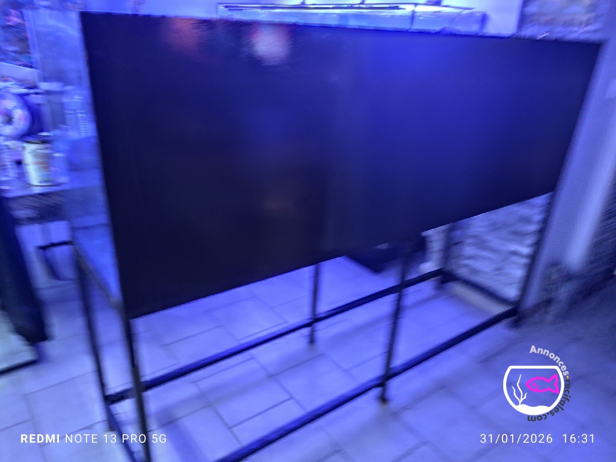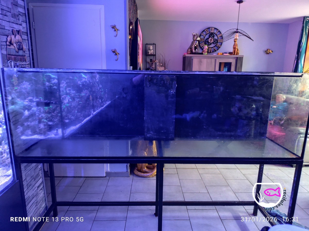 Aquarium récifal 2m avec table metalique et surverse au milieu avec double perçage (passe parois compris fond noir 500 prix ferme
