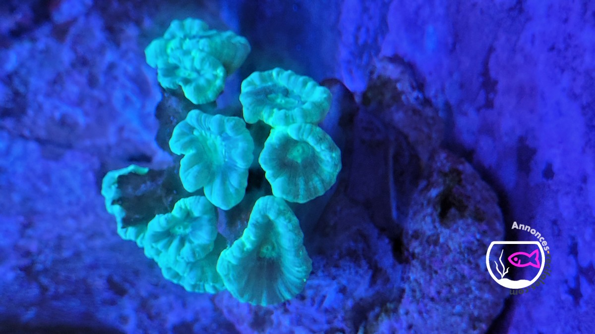 Vends Caulastrea curvata vert métalique 8 tetes 30 euros