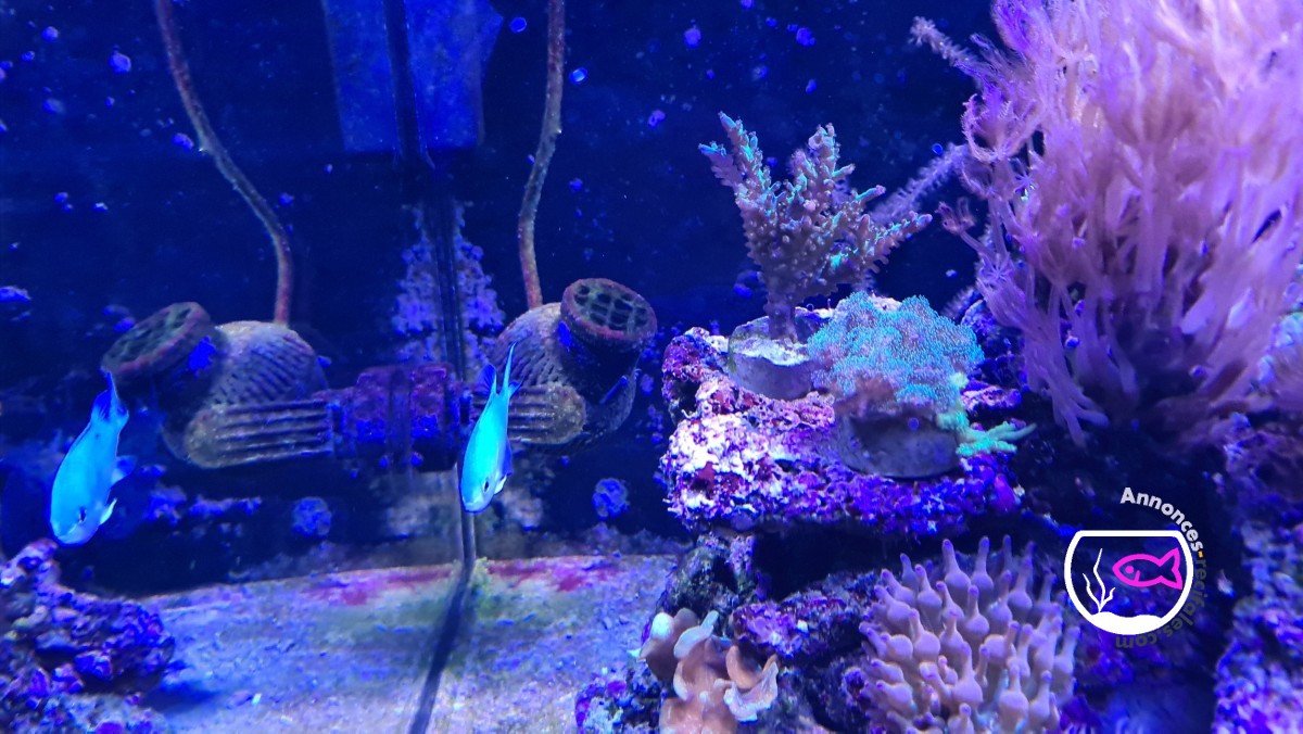 Ou demoiselle bleue-vert d'environ 8 cm, mange de tout en très bonne santé.