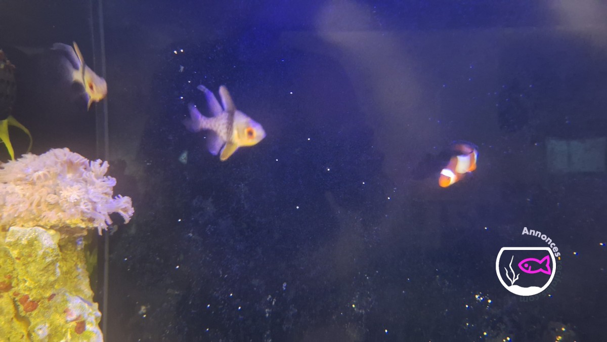 je revend donc différents coraux visibles sur les photos de l'annonce, les poissons et invertébré aussi,