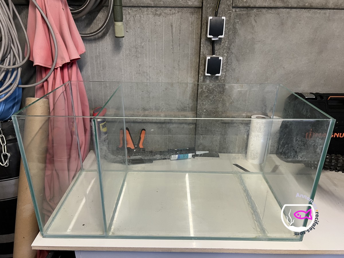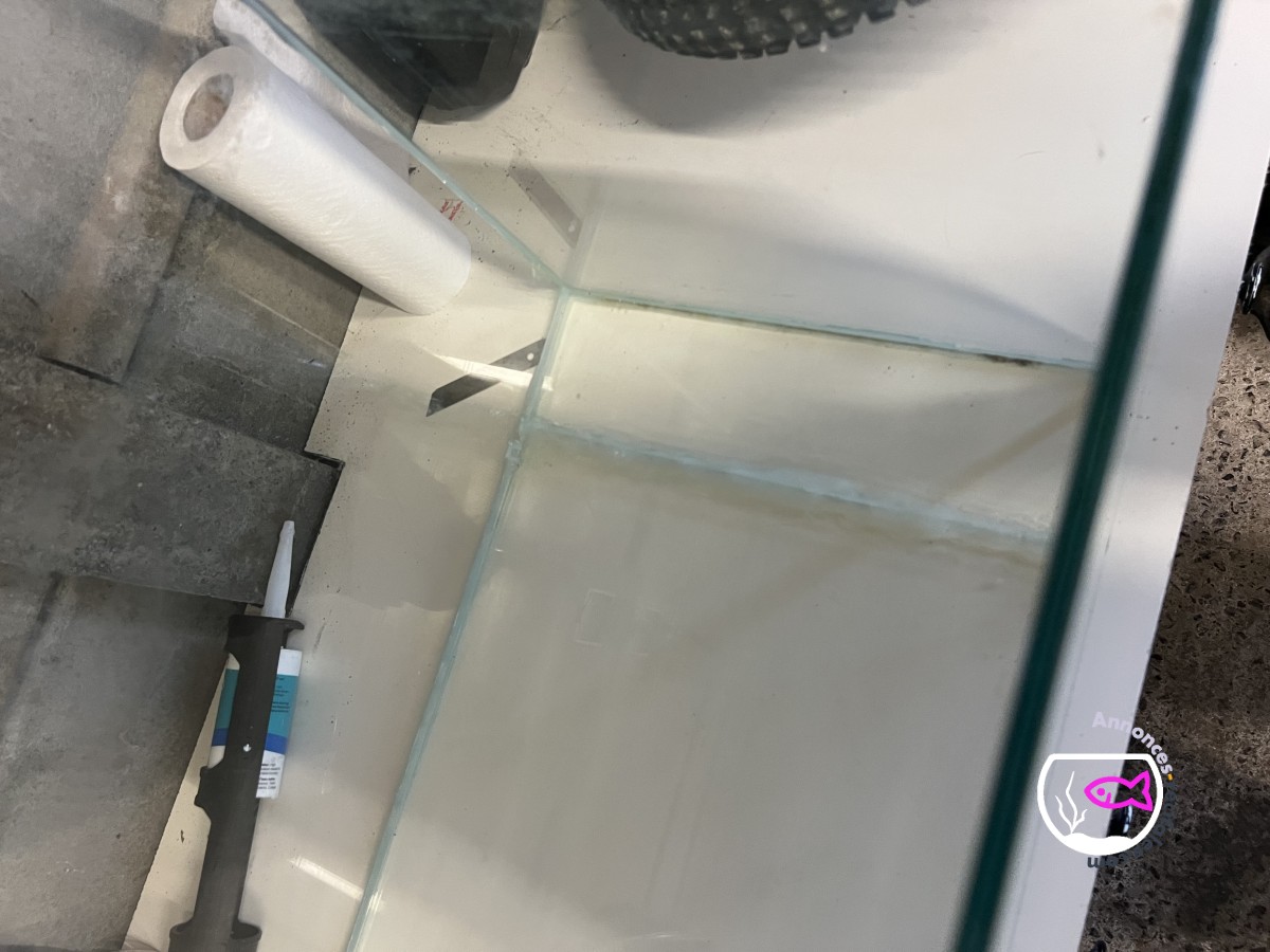 Elle présente une fissure qui a été réparée avec du silicone professionnel spécial aquarium et ne présente pas de fuites