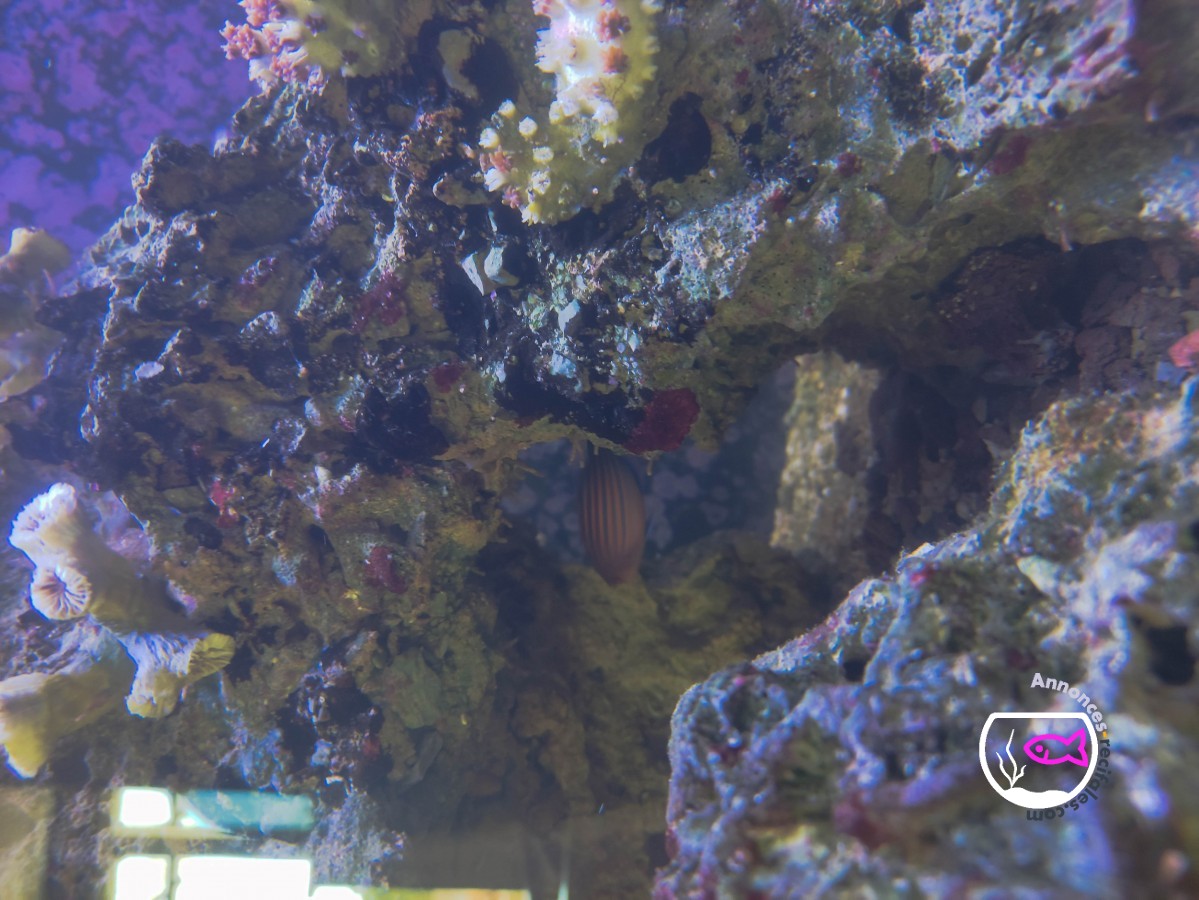 Je me sépare de mon labre a six bandes, très vorace il est venu a bout de planaire rouge il y a maintenant plus d'un an, mais maintenant la cohabitation est un peu compliquée avec mon synchiporus qui a du mal a s'alimenter du coup.