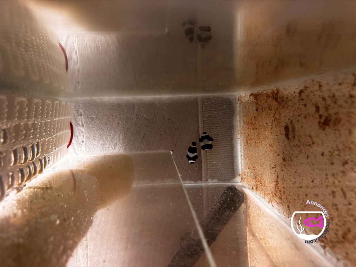 Couple Ocellaris Black environ 3 cm en parfaite santé mais mes ocellaris classiques ne les acceptent pas.