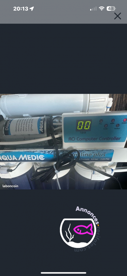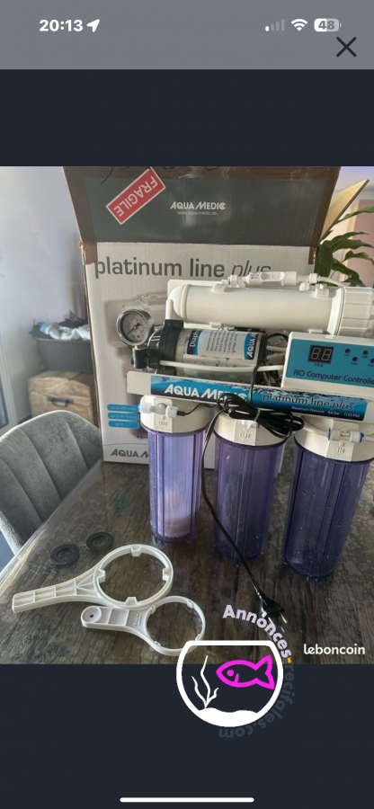 Bonjour, je vend cette osmoseur pour production d eau douce ( pour aquarium eau de mer et eau douce )avec la membrane changé il y a peut de temps, (il faut juste rajouter résine ,cartouche charbon et cartouche sédiments dans les 3 contenants à changer en fonction de votre utilisation, je peux les changer pour vous si rajout d argent de votre part ou vous donner les liens d achats).