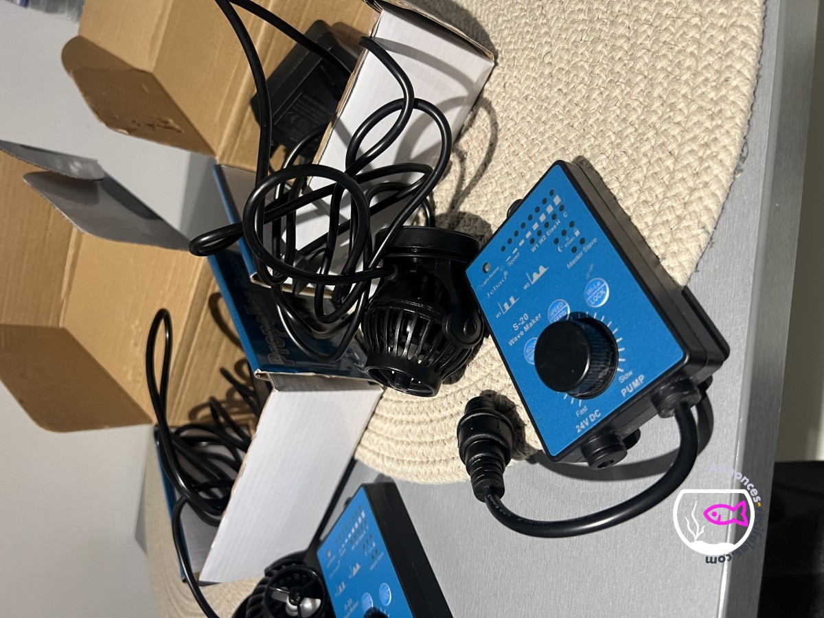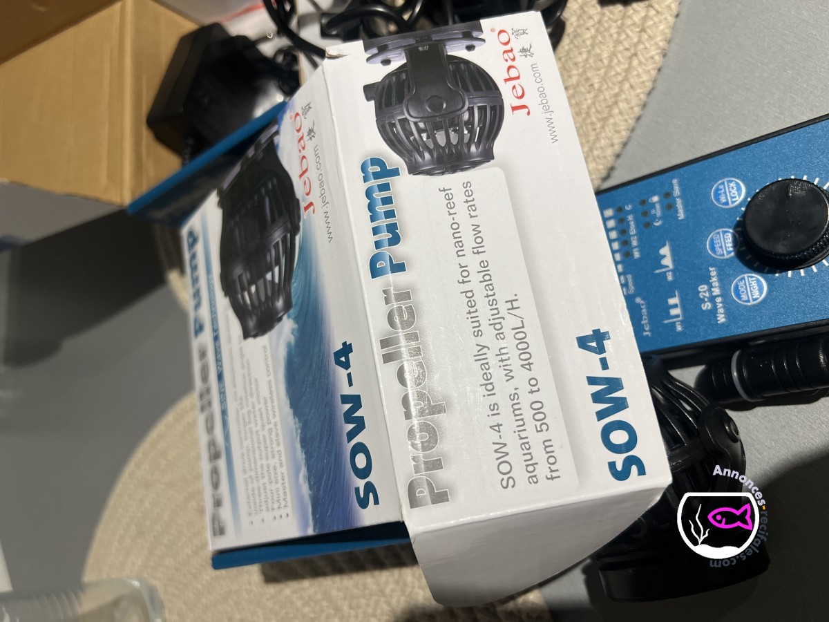 Ce sont des pompes jebao / jecod Sow 4 entièrement pilotables via boîtier de contrôle, le débit est réglable de 500l/h à 4000l/h ce qui convient du nano aquarium recifal jusqu’au plus grand