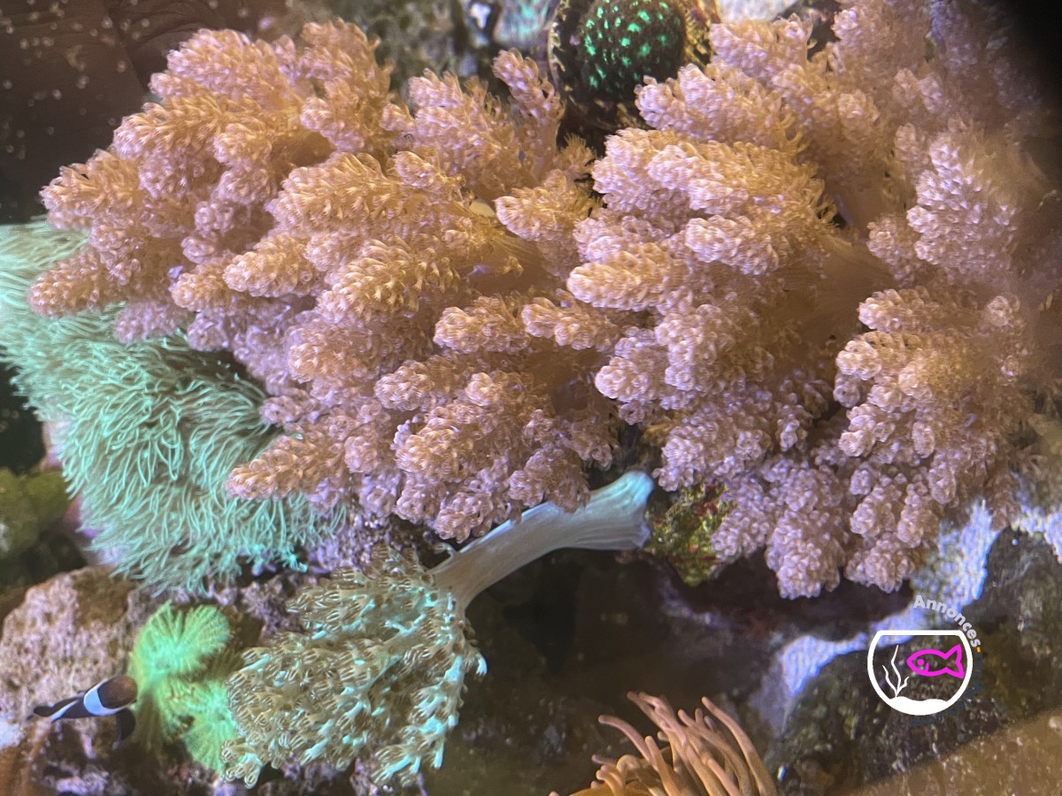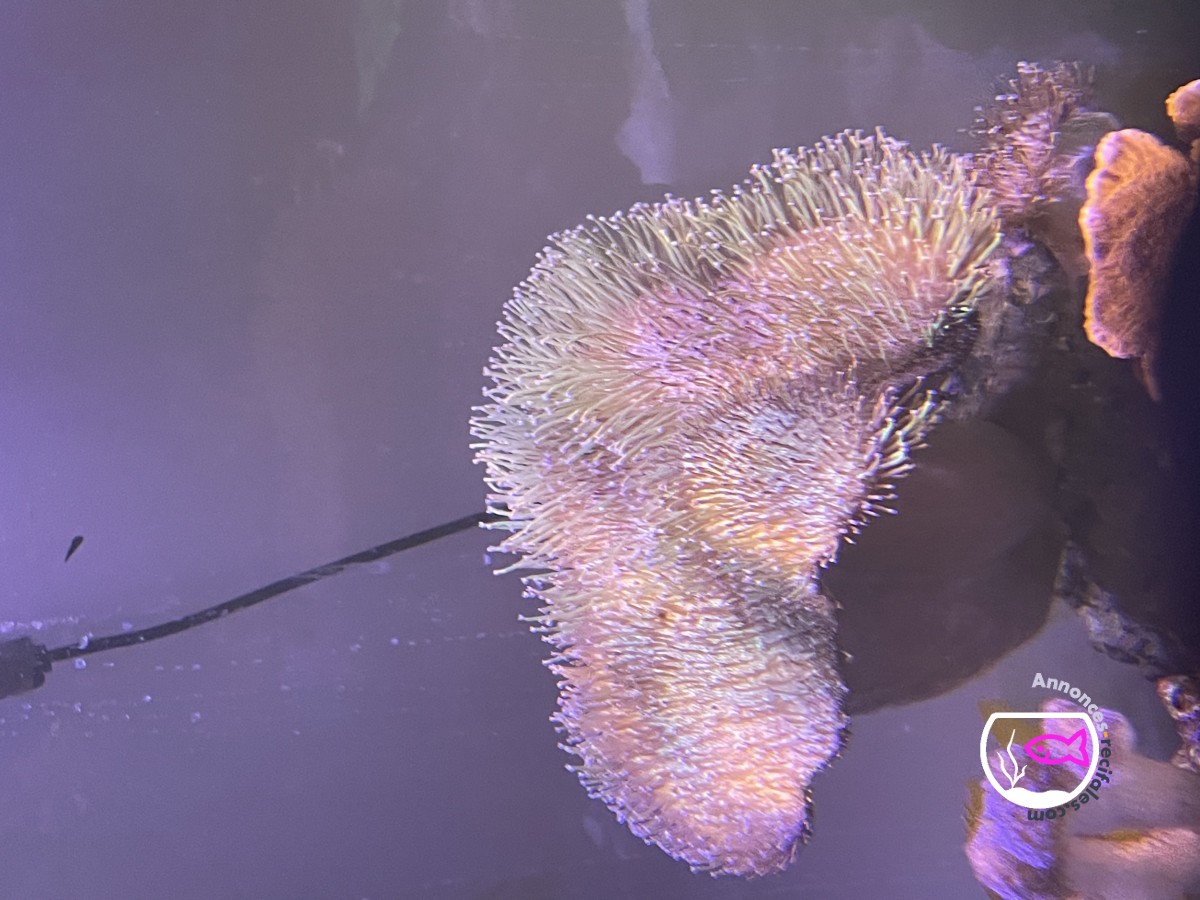 Sarcophyton et Sinularia fixés sur grosse pierre vivante.