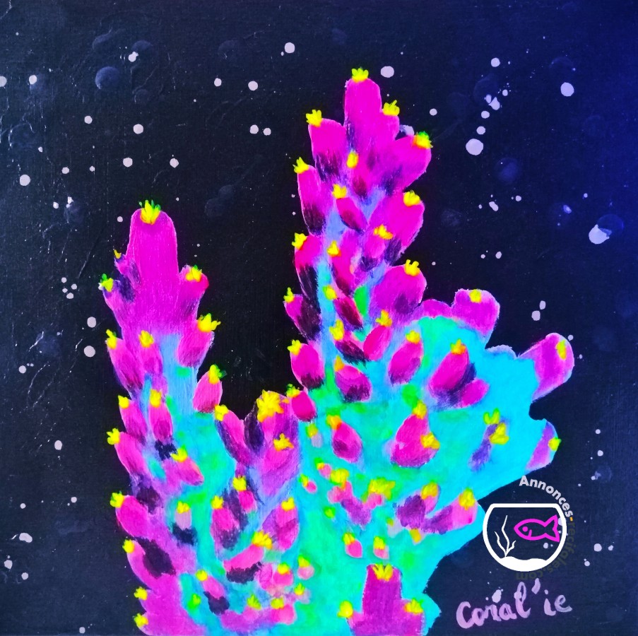 Tableaux réalisés à l'acrylique et peinture fluorescente, vernis spécial pour résistance au sel.