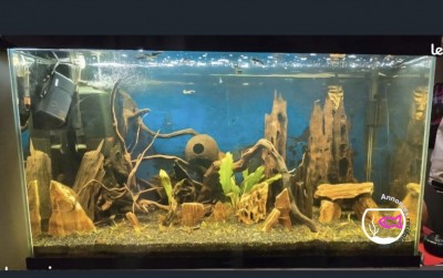Aquarium complet 265 L – Éclairage LED – Décors & accessoires inclus